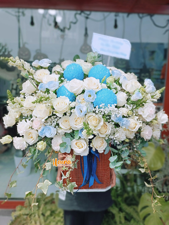 Tặng kèm thiệp chúc mừng, băng rôn, bảng treo theo thông điệp yêu cầu