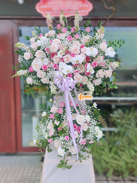 Tặng kèm thiệp chúc mừng, băng rôn, bảng treo theo thông điệp yêu cầu