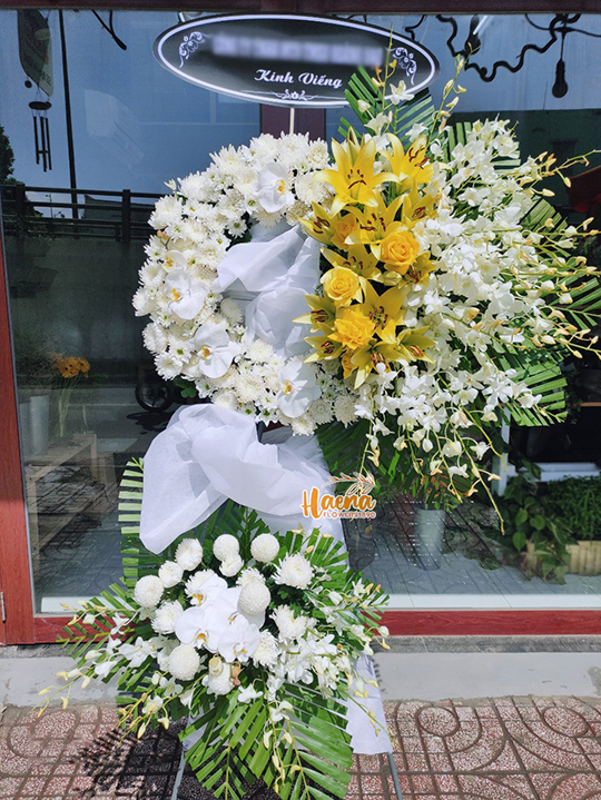 Tặng kèm thiệp chúc mừng, băng rôn, bảng treo theo thông điệp yêu cầu