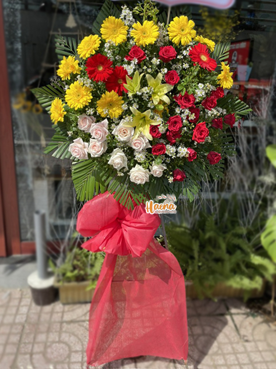 Tặng kèm thiệp chúc mừng, băng rôn, bảng treo theo thông điệp yêu cầu
