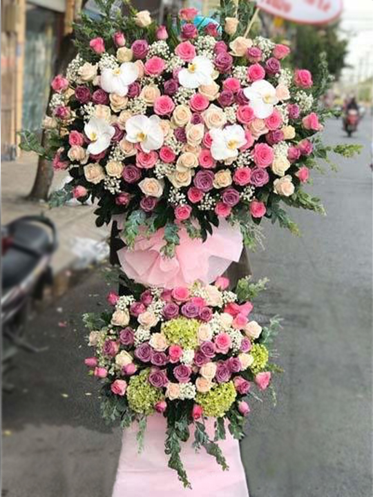Tặng kèm thiệp chúc mừng, băng rôn, bảng treo theo thông điệp yêu cầu