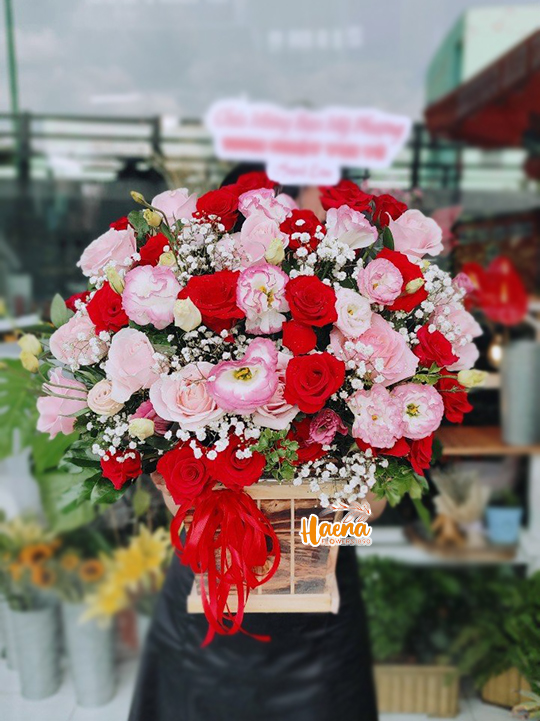 Tặng kèm thiệp chúc mừng, băng rôn, bảng treo theo thông điệp yêu cầu
